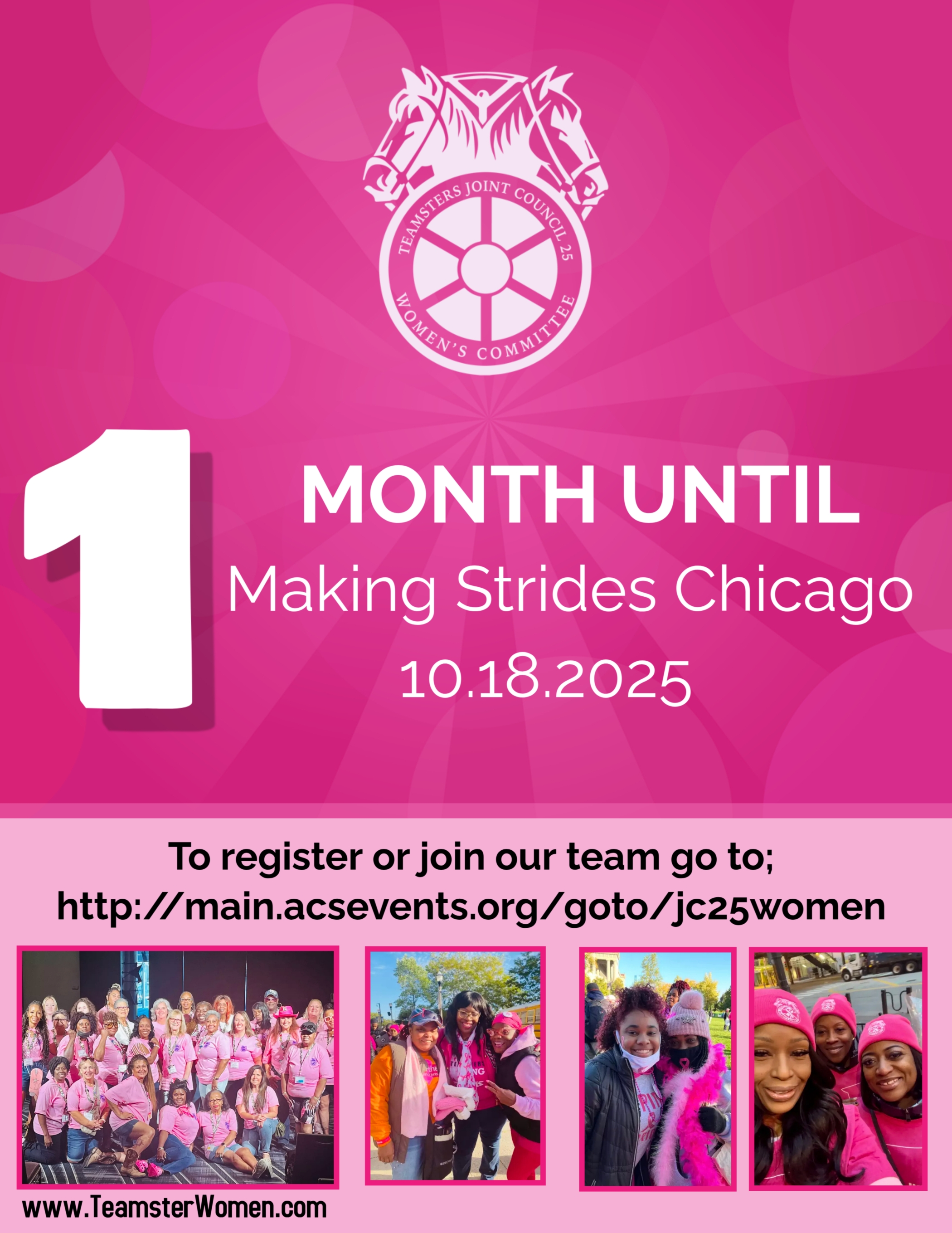 The Teamsters Joint Council 25 Women’s Committee is proud to once again take part in this incredible movement. Together, we walk not only to honor survivors and thrivers, but also to remember those we’ve lost and to push forward in the fight for a world without breast cancer.